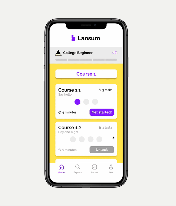 *Gamification: users will be rewarded with coins each time they finish a course to unlock more contents. The incentive keeps users engaged in the product. Users can also pay a fee from a plan to subscribe with more or all contents unlocked.